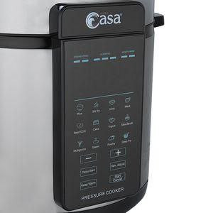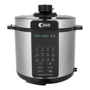 زودپز برقی سوپر کاسا، گنجایش ۶ لیتر، توان مصرفی ۱۰۰۰ وات، دارای ۱۲ برنامه پخت متنوع شامل: برنج، سرخ کن، سوپ، گوشت، حبوبات، کیک، ماست، خورش یا آبگوشت، پخت دانه ها (جو)، بخارپز، طیور(مرغ، اردک و…)، سرخ کن با روغن، قابلیت زمان دهی جهت شروع پخت با تاخیر، دارای درب پوش محافظ آلومینیومی که دیگر نگرانی بابت گرفته شدن سوپاپ نخواهید داشت و با خیال راحت میتوانید هر نوع مواد غذایی را پخت کنید، سیستم گرم نگه دارنده، دارای سبد سرخ کن، سبد استیل بخارپز، طراحی و مهندسی محصول در کشو انگلستان مونتاژ نهایی در کشور چین،
