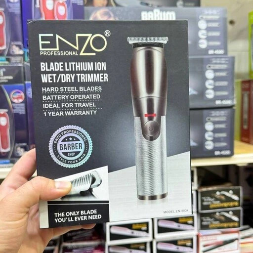 ماشین اصلاح برند معتبر ENZO مدل EN-5034 باتری لیتیومی موتور قوی 6500 دور در دقیقه بدنه تمام فلزی
