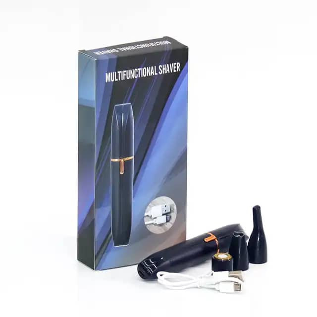 دستگاه اصلاح صورت و بدن 4 کاره شارژی MULTIFUNCTIONAL Shaver یک محصول فوق العاده با کیفیت و با کارایی های بالا می باشد که توسط آن می توانید هم کار اصلاح موهای زائد نقاط حساس صورت و بدن دست و پا را بدون درد انجام دهید و هم توسط سری دوم آن با دقت بسیار بالا ، ابروها را اصلاح کنید،سری سوم به عنوان خط زن استفاده میشود و با سری چهارم میتوانیدموهای داخل بینی و روی گوش ها را به راحتی کاملا تمیز نمایید✳️✓ مشخصات: 🔸منبع انرژی:برقی،شارژی 🔸جنس تیغه:استیل ضدزنگ 🔸اقلام همراه:سری موزن گوش و بینی،سری مخصوص ابرو،سری شیور اصلاح صورت و بدن،سری خط زن،درپوش،کابل شارژ،برس تمیزکننده،دفترچه راهنما