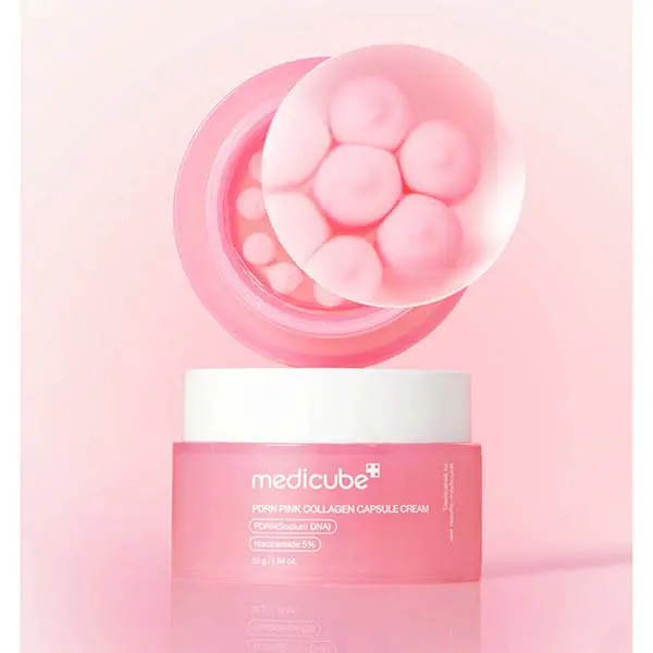 کرم روشن کننده کپسولی PDRN و کلاژن صورتی مدی کیوب