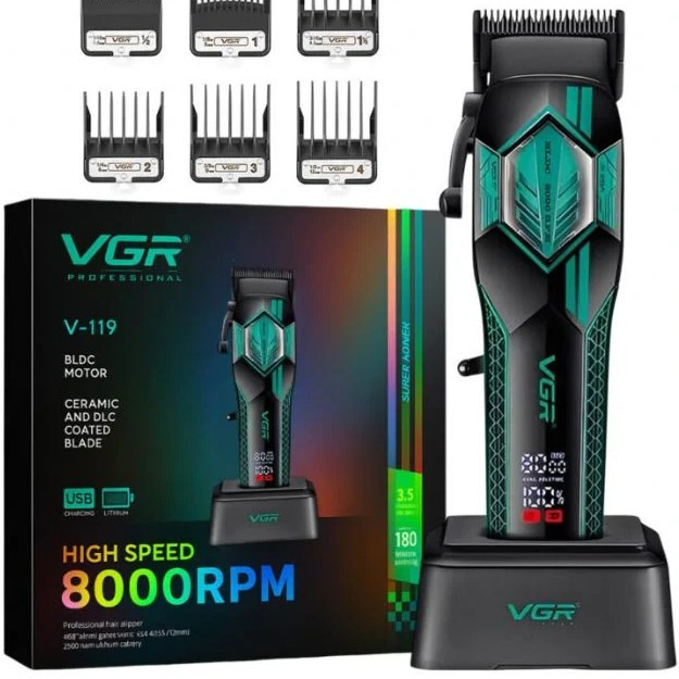 وی جی ار مدل 119 یکی از مدلهای حرفهای و قدرتمند برای فید، سایهزنی و حجمزنی دقیق به شمار میرود. تیغههای آن از جنس سرامیک با روکش DLC ساخته شدهاند که اصلاحی نرم، بادوام و ضد حساسیت را ممکن میسازد. ترکیب طراحی ارگونومیک، قدرت موتور بالا و دقت عملکرد، این دستگاه را به گزینهای جدی برای مصارف حرفهای و خانگی تبدیل کرده است.